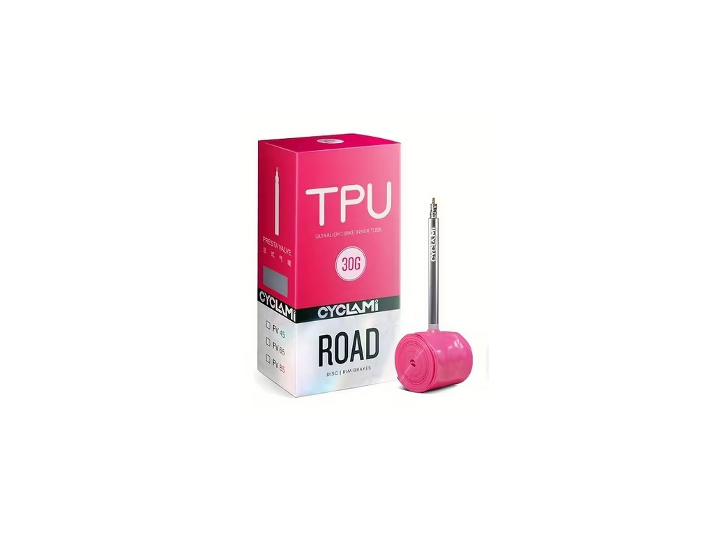 Chcete, aby vaše silniční kolo akcelerovalo rychleji, lépe drželo rychlost a působilo celkově lehčeji? Ultralight silniční duše CYCLAMI TPU 30 g je navržena pro jezdce, kteří chtějí z kola dostat maximum.