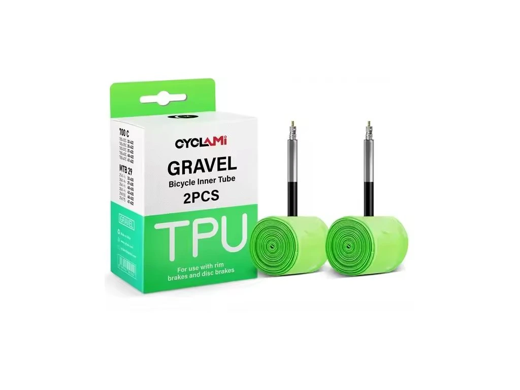 Ultralehká gravelová duše Cyclami vyrobená z moderního materiálu TPU s polyesterovou příměsí je navržena pro maximální efektivitu, nízkou hmotnost a vysokou odolnost v náročných gravelových podmínkách.