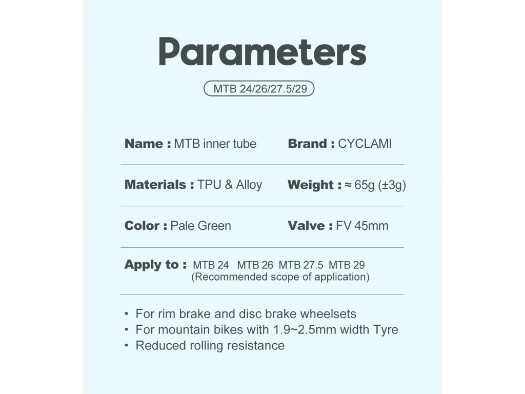 Chcete, aby vaše horské kolo reagovalo rychleji, stoupalo lehčeji a bylo celkově živější? Ultralight duše CYCLAMI TPU je navržena pro maximální výkon v terénu.