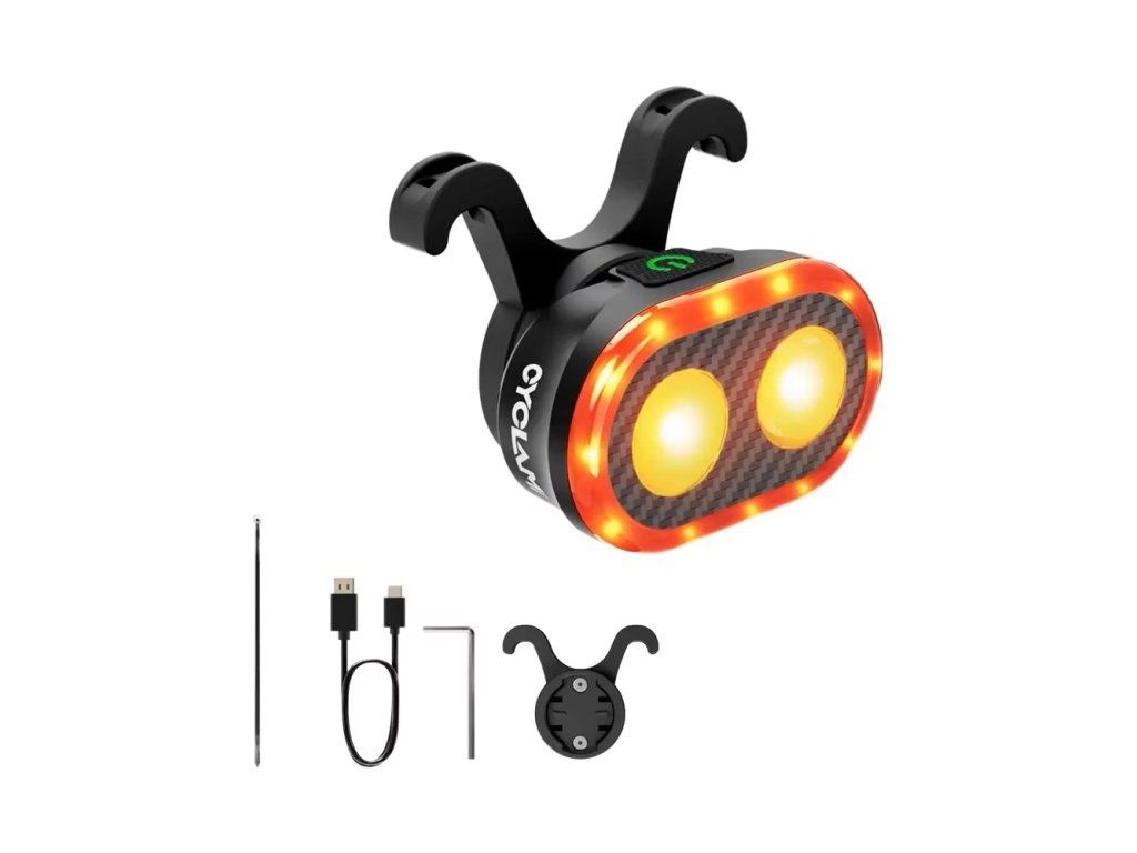 CYCLAMI CY200 je chytré zadní světlo na kolo vybavené pokročilým snímáním brzdění, vysokou svítivostí a automatickými funkcemi pro maximální bezpečnost při jízdě. Díky lehké konstrukci, vodotěsnosti IPX6 a jednoduché montáži je ideální volbou pro každodenní používání na silnici, gravelu i MTB.