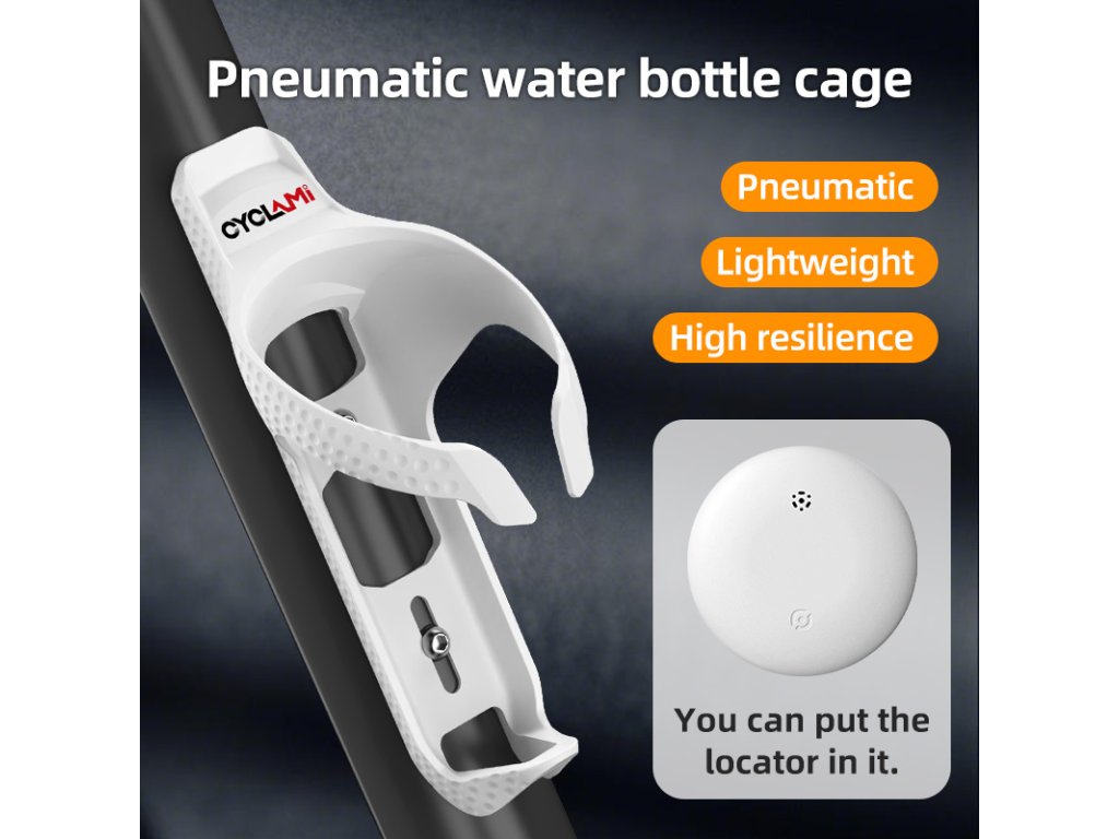 Tento ultralehký držák na láhev na vodu z cyklistického kola, vyrobený z odolného nylonového vlákna , váží pouhých 43 g a vyznačuje se elegantním aerodynamickým designem. Je vhodný pro horská i silniční kola a obsahuje plochý šestihranný upevňovací šroub, šestihranný klíč a šrouby pro snadnou instalaci. Jeho minimalistický design je k dispozici v černé a bílé barvě a hodí se k rámům s montážními otvory, takže nabízí funkčnost i styl. Balení obsahuje Apple GPS lokátor kompatibilní se systémem iOS, který je možné snadno instalovat dovnitř těla držáku.Doplňkové parametry