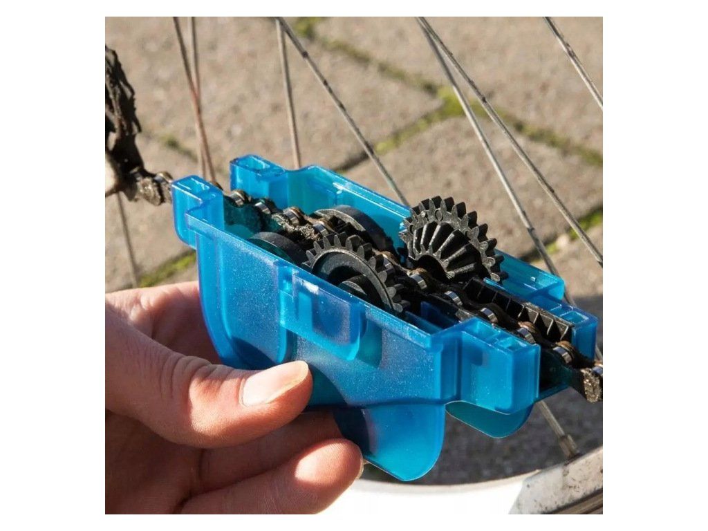 Nástroj určený k čištění a mazání řetězu jízdního kola. Toto zařízení pomůže rychle a snadno vyčistit jakýkoli typ řetězu od nečistot bláta a písku a to bez nutnosti jeho sundávání z kola. Udržování řetězu v čistotě je důležitým prvkem udržování kola v dobrém stavu.