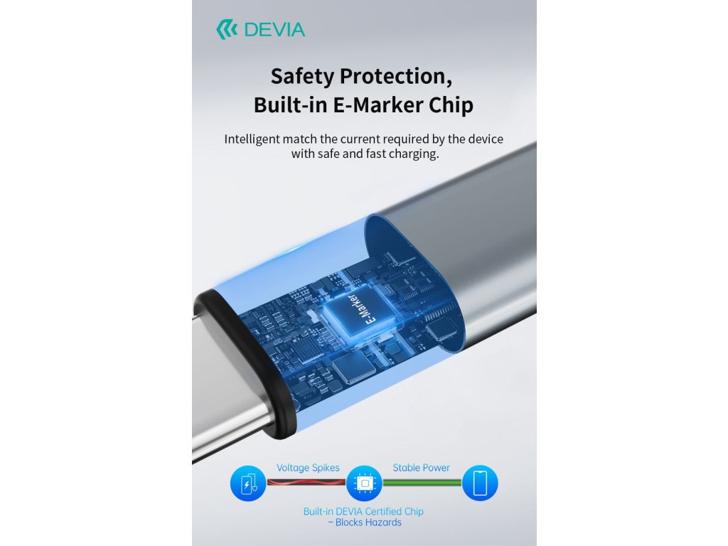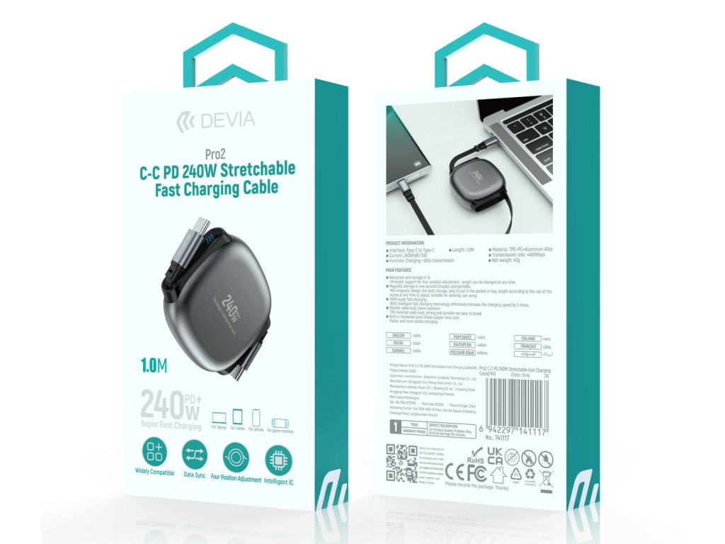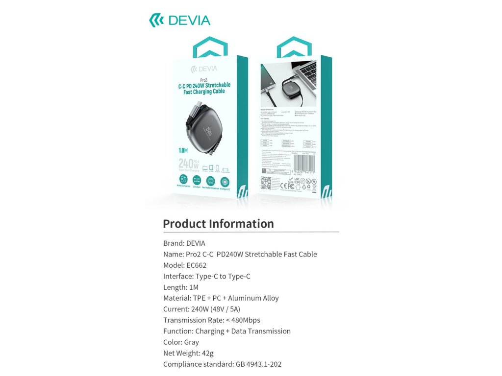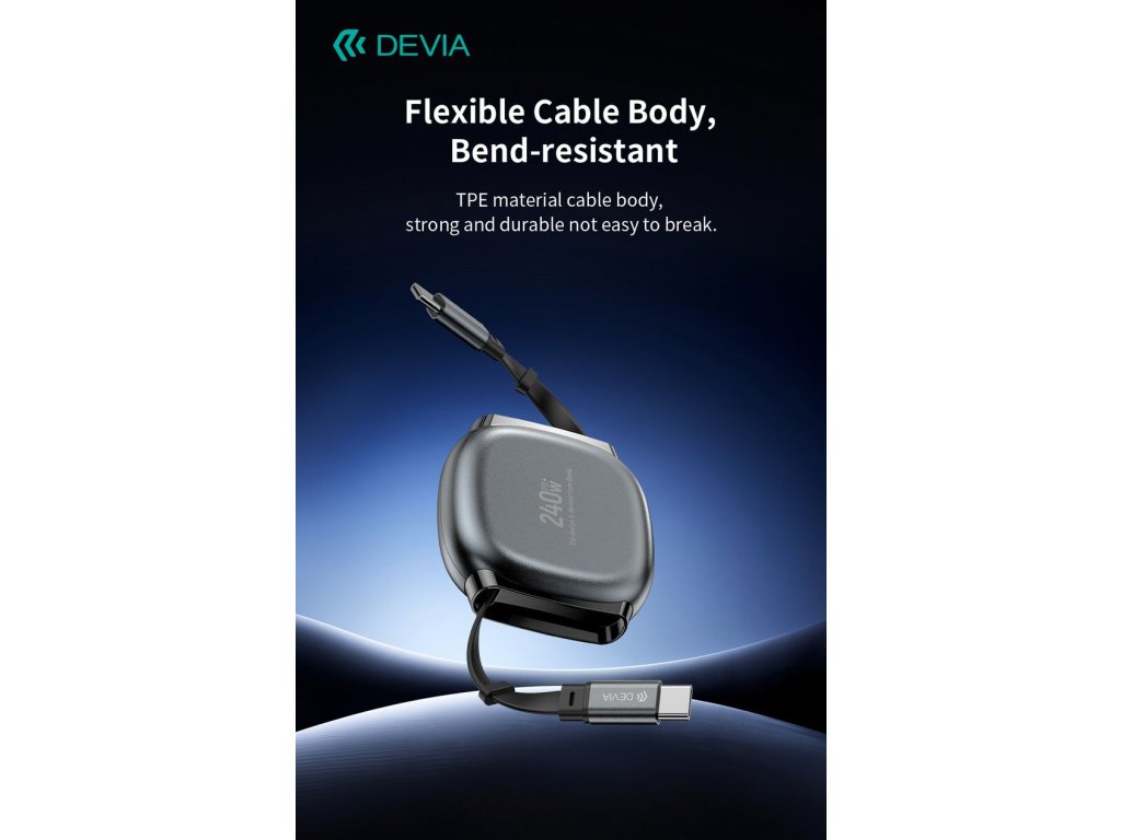 DEVIA kabel USB PD type C-C 240W 1m Pro2 zatahovací