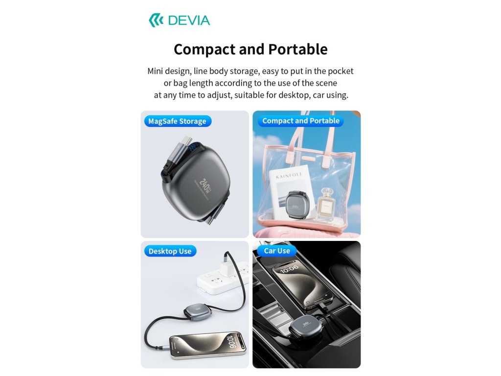 Kompaktní provedení s možností navinutí kabelu do těla pouzdra. Snadné skladování, žádné zamotávání. - USB‑C ↔ USB‑C rozhraní