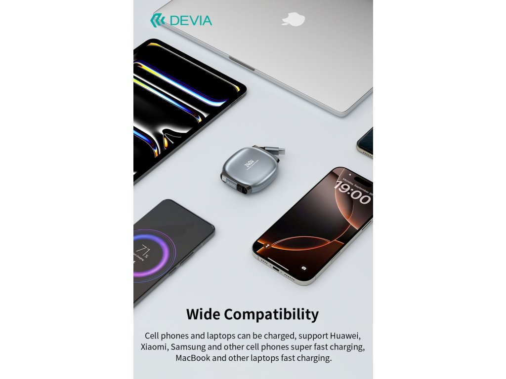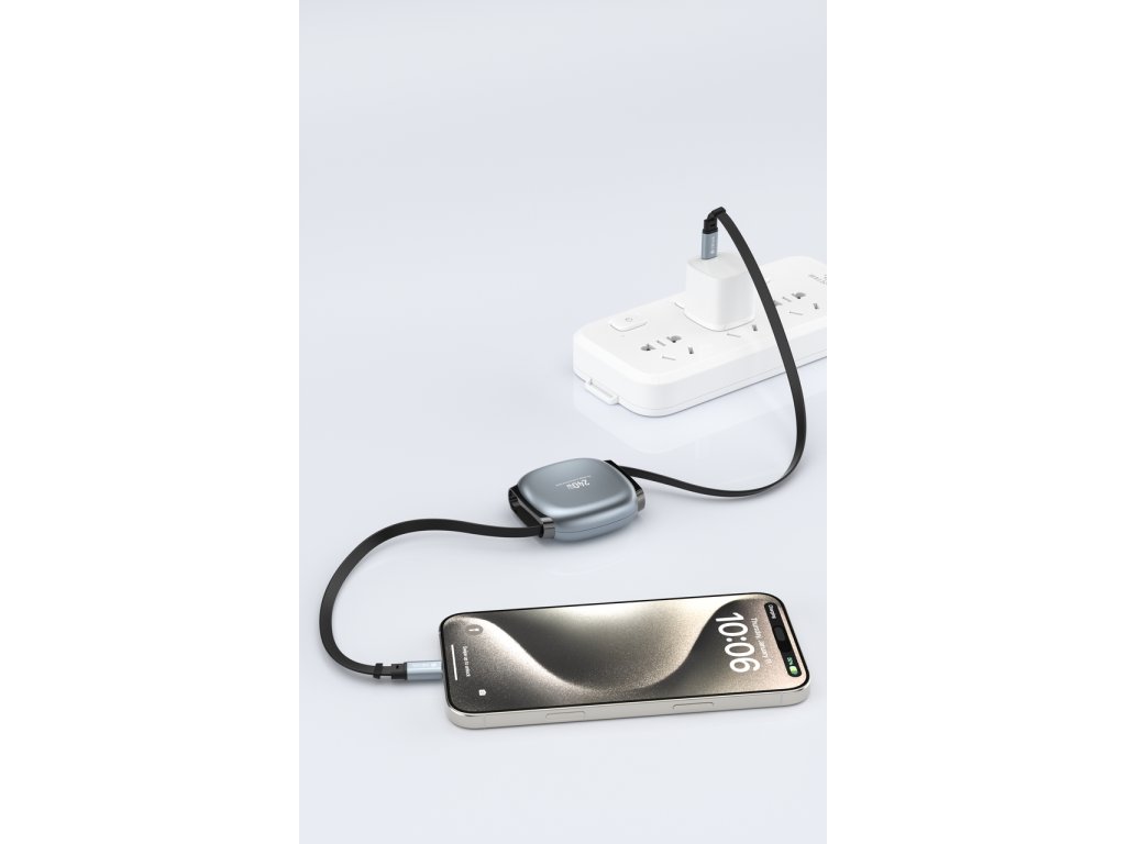 Moderní a praktický kabel pro rychlé nabíjení i přenos dat. Díky zatahovací konstrukci je ideální na cesty, do kanceláře i do auta — nezamotává se, šetří místo a vždy zůstává přehledně uspořádaný. Podporuje výkon až 240 W (48 V / 5 A), takže bez problémů zvládne napájet i výkonné notebooky s USB‑C.
