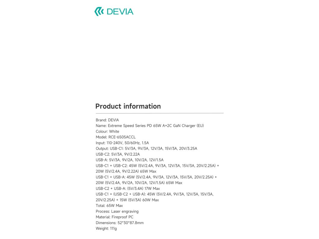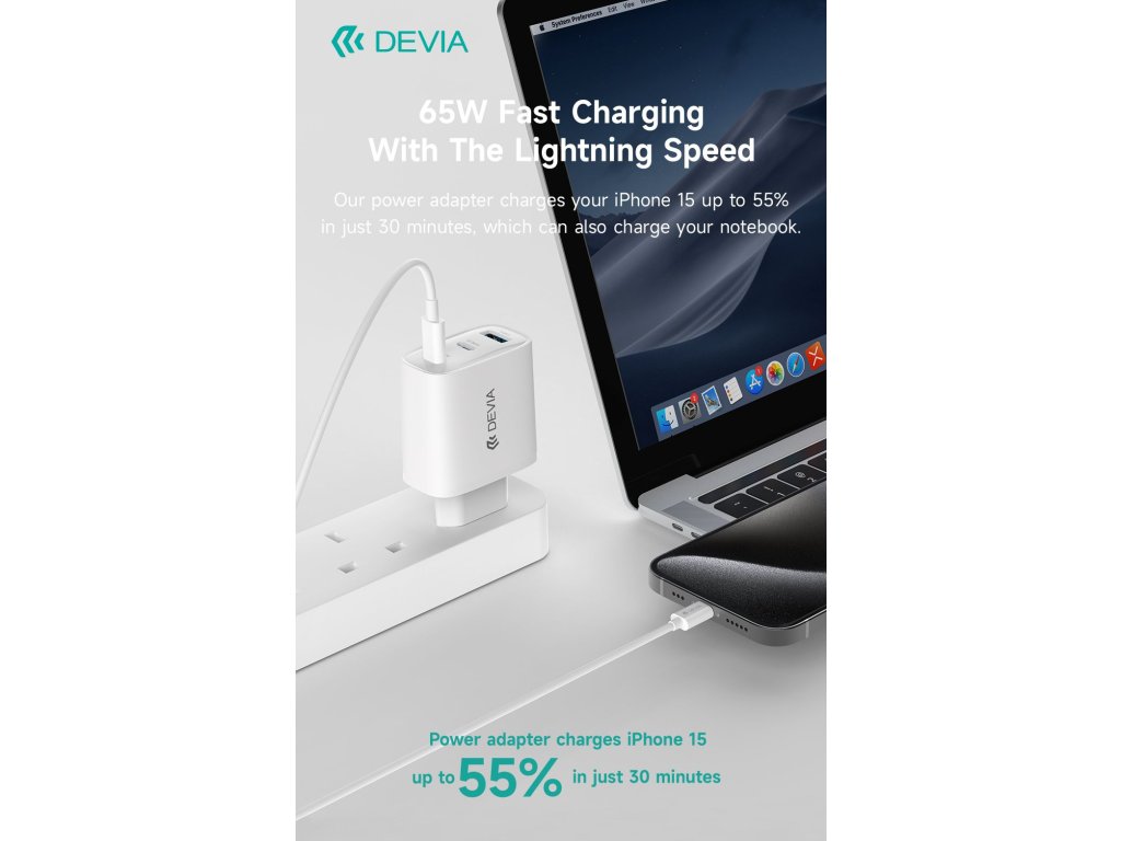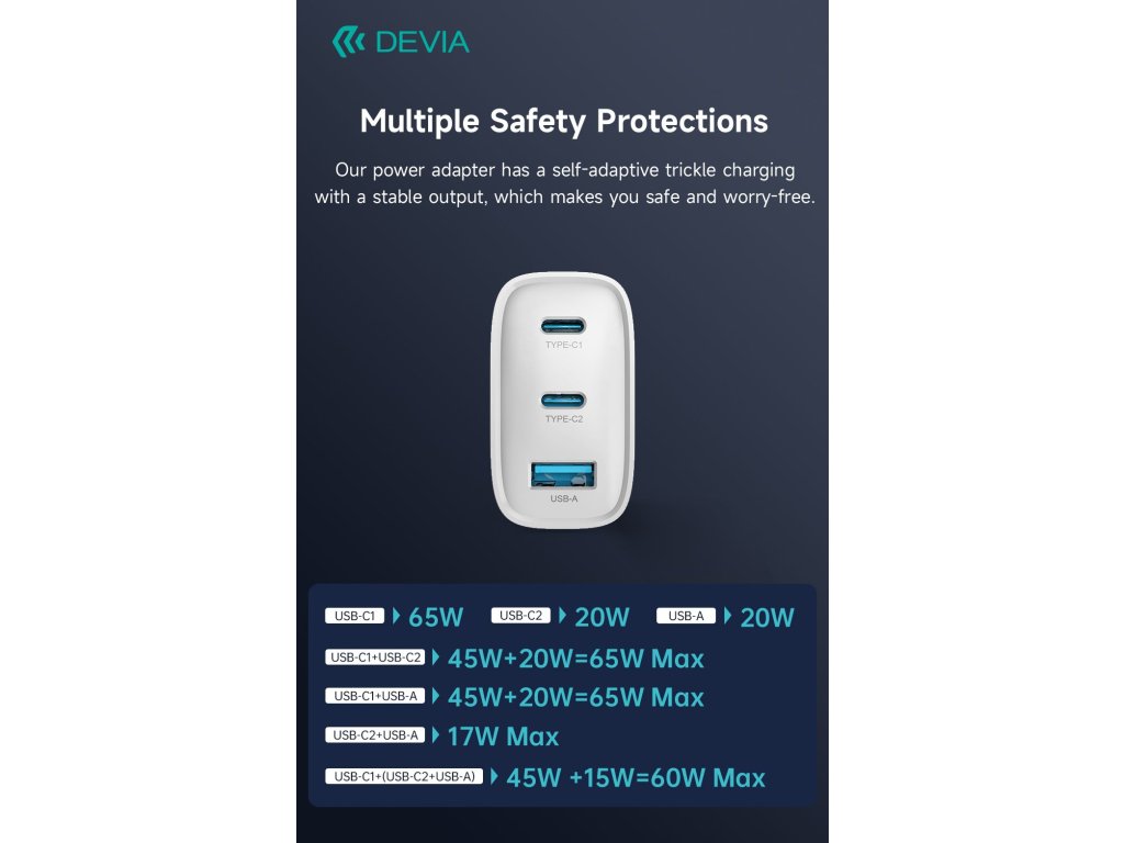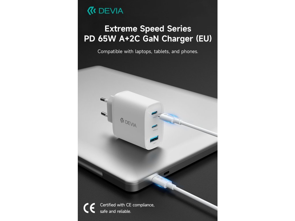 DEVIA nabíjecka PD do sítě 65W A+2C GaN