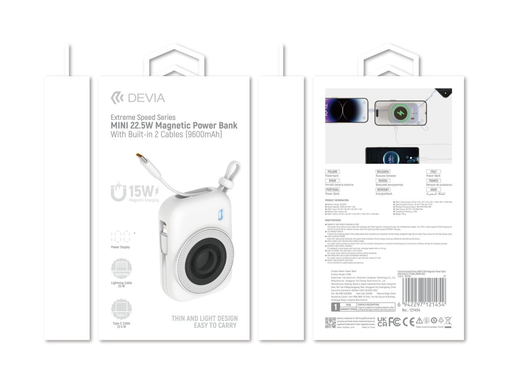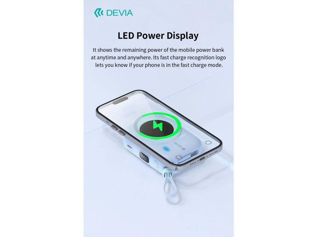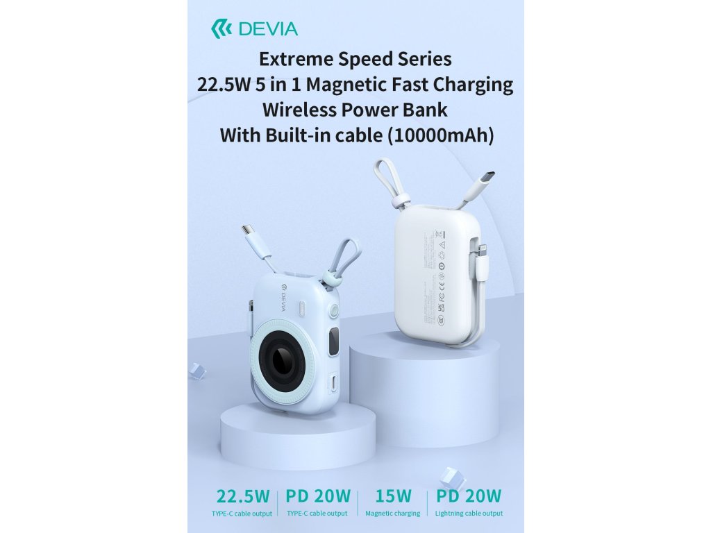 DEVIA powerbank 9600mAh 2 kabely 22.5W magnet bílá