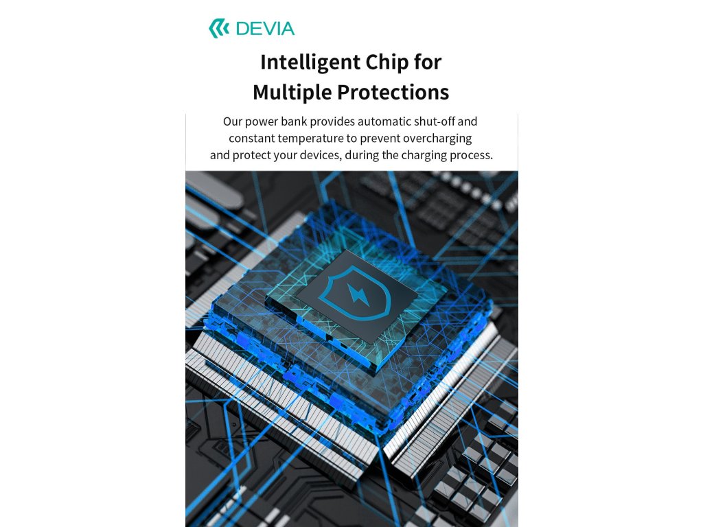 Naše powerbanka se automaticky vypíná a udržuje konstantní teplotu, aby se zabránilo přebíjení a chránila vaše zařízení během nabíjení.