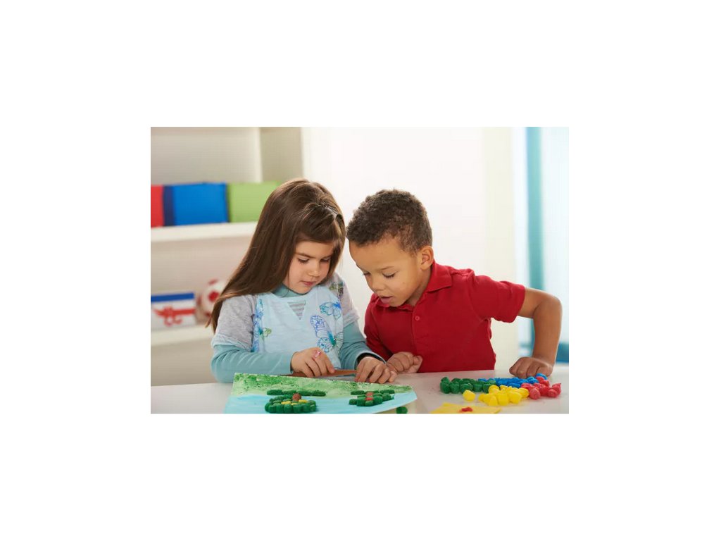 Barevné stavební dílky jsou vyrobeny z bramborového škrobu a obarvené potravinářským barvivem - tedy 100% přírodní.