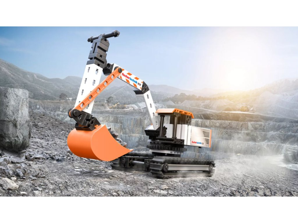 - Detailní sekvence pohybů a typický barevný vzhled Fischertechnik dělají z bagru vrchol každého staveniště.