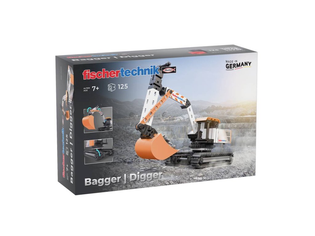 S bagrem fischertechnik mohou malí stavitelé vykopat vše, co potřebují pro úspěšnou stavbu. Pohyblivé rameno a lopata umožňují dětem vytvářet výkopové jámy a přemisťovat materiál. Bagr se snadno sestavuje a zaujme realistickými pohyby a atraktivním barevným schématem fischertechnik. Nezbytná výbava pro každého, kdo si chce zažít vlastní dobrodružství na staveništi!