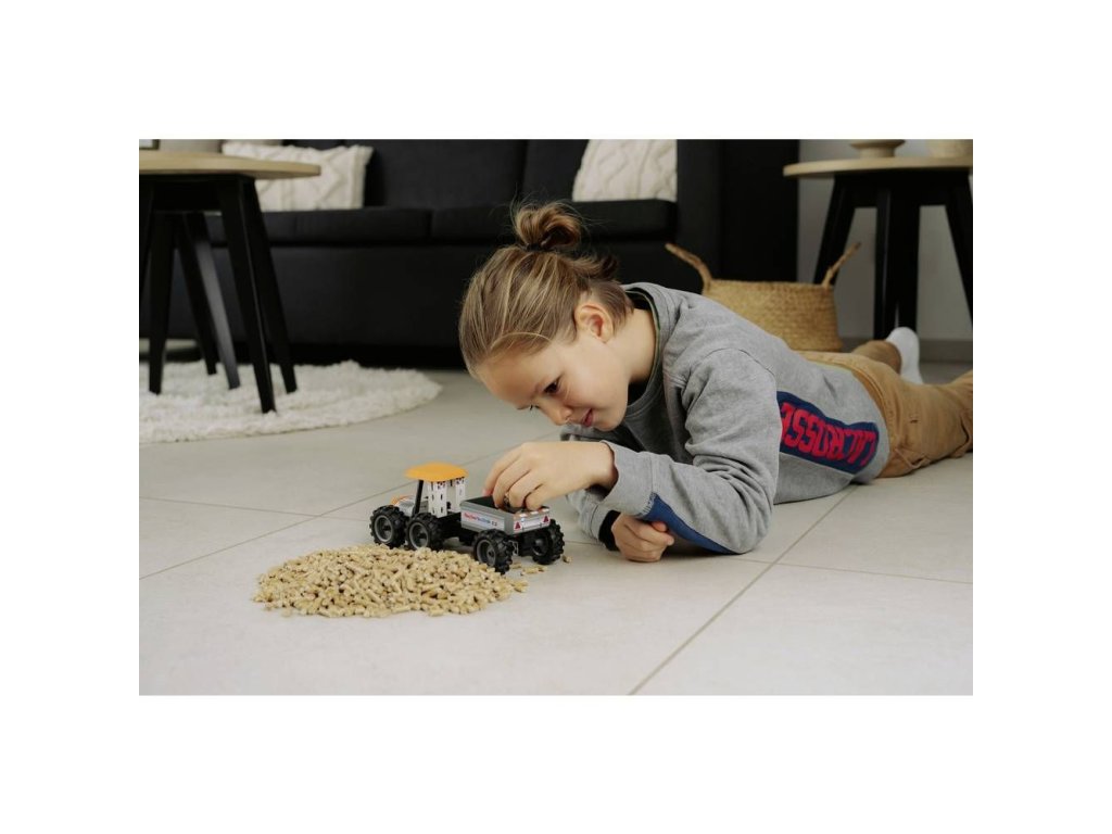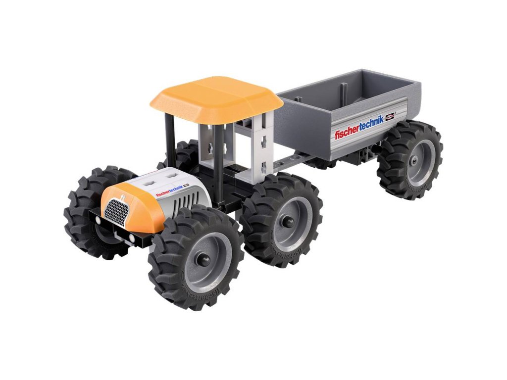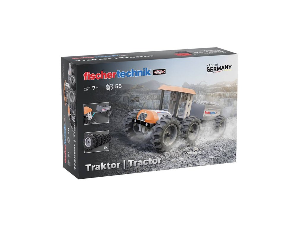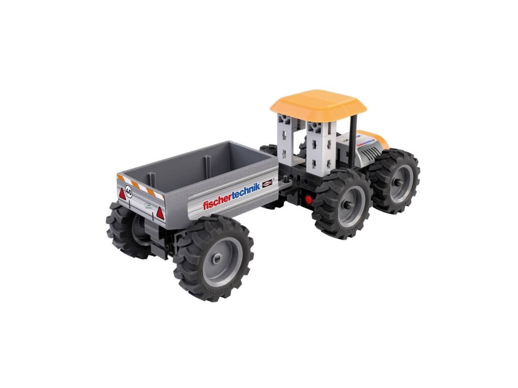 Traktor fischertechnik přináší na staveniště sílu a všestrannost. Díky robustní konstrukci a velkým kolům je vhodný do všech terénů. Jeho přívěs je ideální pro přepravu stavebních materiálů. Jeho odolné komponenty a nový barevný vzhled z něj dělají oblíbený model všech mladých techniků. Traktor se snadno sestavuje pomocí ilustrovaného návodu.
