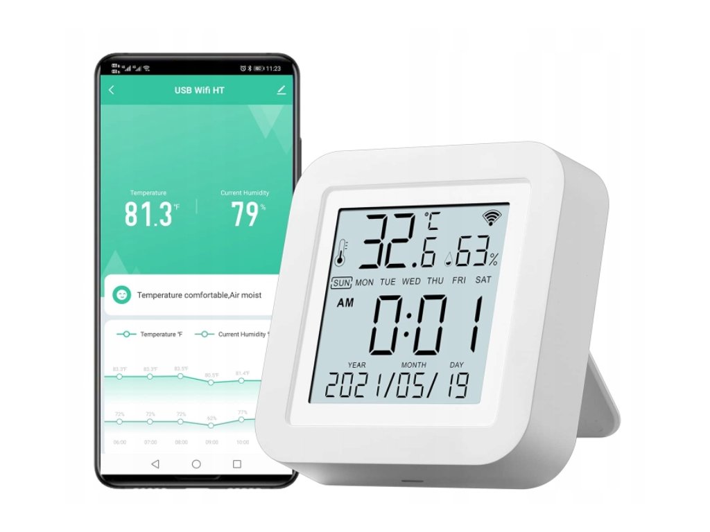 Chytrý senzor teploty a vlhkosti Wi-Fi Gosund S6 (LCD obrazovka, podsvícení) Postarejte se o optimální podmínky ve svém okolí. Inteligentní senzor Gosund S6 přesně měří teplotu a vlhkost vzduchu - výsledky měření naleznete na podsvícené LCD obrazovce nebo v aplikaci. Produkt umožňuje zvolit jednotku (°C nebo °F) a spolupracuje s dalšími zařízeními, což umožňuje automatizaci. Je také kompatibilní s hlasovými asistenty Google Assistant a Amazon Alexa. Přizpůsobte si ho svým potřebám Senzor S6 umožňuje zvolit jednotku měření teploty – dostupné možnosti jsou °C a °F. Po změně nastavení zařízení synchronizuje data zobrazená na obrazovce a v aplikaci. Můžete si také vybrat formát zobrazení času (12hodinový nebo 24hodinový). Možnosti automatizace Užijte si větší pohodlí ve svém domově. Pomocí aplikace můžete připojit senzor k dalším zařízením a automatizovat jejich provoz. Takto se například při poklesu vlhkosti v prostředí pod určitou úroveň automaticky spustí zvlhčovač vzduchu. Kompatibilita s hlasovými asistenty Senzor je kompatibilní s chytrými asistenty, jako jsou Amazon Alexa a Google Assistant. Můžete jej tedy ovládat hlasem! Nyní stačí jen pár slov, abyste zjistili teplotu nebo vlhkost ve vybrané místnosti. Ideální pro různé aplikace Tento praktický senzor bude perfektně fungovat v různých místnostech. Využijete ji v ložnici, dětském pokoji nebo skleníku. Pokud chcete, zavěste na zeď nebo jednoduše postavte na stůl či poličku. S ním můžete sledovat a mít jistotu, že ve vámi zvoleném prostředí panují optimální podmínky. Další funkce s aplikací Specializovaná aplikace Gosund vám umožňuje prohlížet historická data o teplotě a vlhkosti. Můžete je také uložit na rok a exportovat je na svou e-mailovou adresu. To však nejsou všechny možnosti. Aplikace také nabízí funkci alarmu – když teplota nebo vlhkost překročí nastavenou úroveň, obdržíte okamžité upozornění. Technické parametry: Zdroj napájení: 3x AAA baterie Standardní Wi-Fi: 2,4 GHz IEEE 802.11 b/g/n Rozsah měření teploty: Od -9,9°C do 60°C Přesnost měření teploty: ±1 °C Rozsah měření vlhkosti: 0 % RH - 99 % RH Přesnost měření vlhkosti: ±5 % RH Rozměry: 56 x 56 x 23 mmDoplňkové parametry