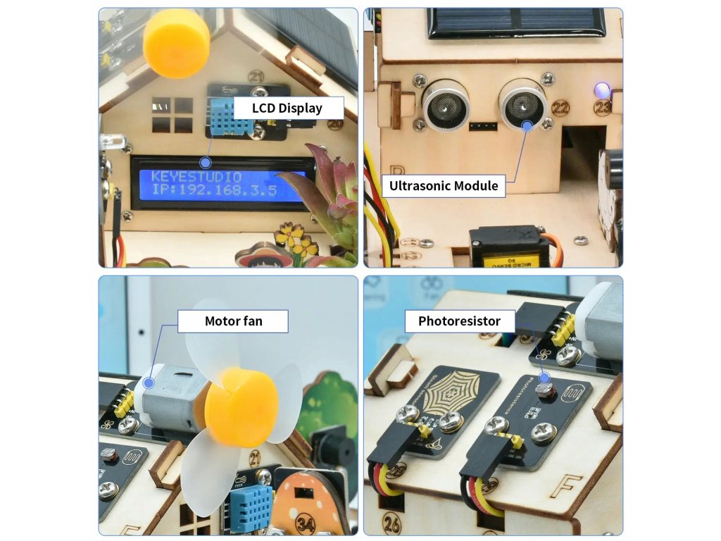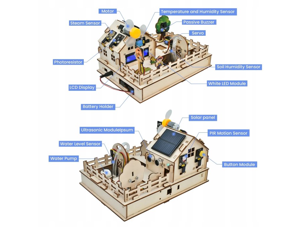 Více senzorů pro chytré farmářské aplikace.Praktické experimenty pro pochopení fungování senzorů.Komplexní návody s instrukcemi a příklady kódu.ESP32 pro flexibilitu a škálovatelnost.Interaktivní platforma pro komunikaci.. Tato sada pro chytrou farmu, založená na technologii ESP32 Internet of Things, integruje několik senzorů, což umožňuje automatickou a bezdrátovou manipulaci a inteligentní řízení.Tento tutoriál komplexně popisuje všechny senzory a moduly v sadě, jako je fotorezistor, senzor vlhkosti půdy, senzor hladiny vody a bezdrátový komunikační modul ESP32. Prostřednictvím tohoto tutoriálu se naučíte používat senzory, konstruovat systém IoT a dosahovat inteligentního řízení farmy pomocí programování.Vlastnosti:Komplexní:Zahrnuje několik modulů pro aplikace chytrého zemědělství.Praktický:Praktické experimenty prohlubují pochopení fungování senzorů a sběru dat.Inovační:Podrobné návody s instrukcemi, video návody a ukázkovými kódy.Flexibilní:Hlavní řídicí deska ESP32 nabízí flexibilitu a škálovatelnost pro projekty.Interaktivní:Poskytuje komunitní platformu pro sdílení zkušeností a spolupráci.Parametry:Provozní napětí: 5VNapětí baterie: 9VMaximální výstupní proud: ≤1,5 AMaximální spotřeba energie: ≤10 WPrincip fungování WiFi: 2,4GProtokol Bluetooth: v4.2 Full StandardRozměry: 255 x 185 x 130 mm ±1%Provozní teplota: –10 °C ~ +65 °C