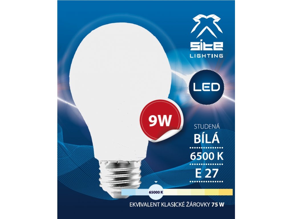 LED žárovka, příkon 9 W, studené bílé světlo, ekvivalent klasické žárovky 75 W výhodné balení 12ks Specifikace: Napětí: 220-240V Patice: E27 Barva světla: 6500K (studená bílá) Světelný tok: 840 lumenů Úhel svitu: 200° Životnost: 150000+ h CRI: 78+ Krytí: IP20 (není voděodolná) Rozměry: 60x108mmDoplňkové parametry