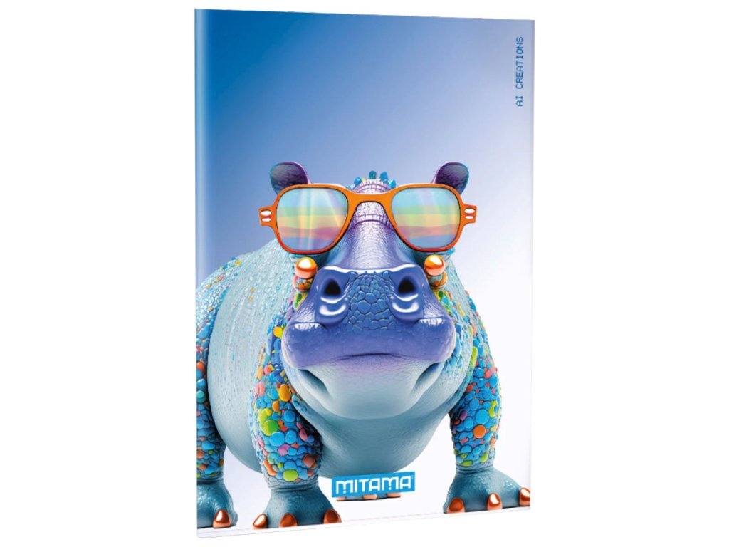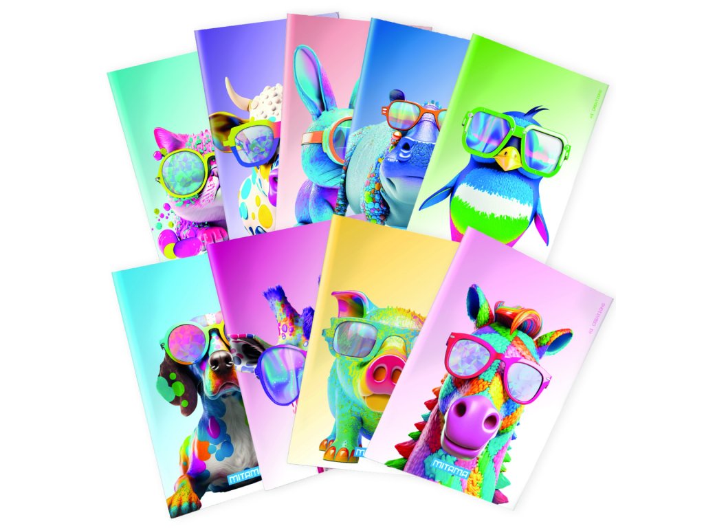 Sešit A4, linky, 40+2 stran, 80gr., FSC papír, lakované desky - různé motivy - veselá zvířátka. Velikost: 21x29,7cm
