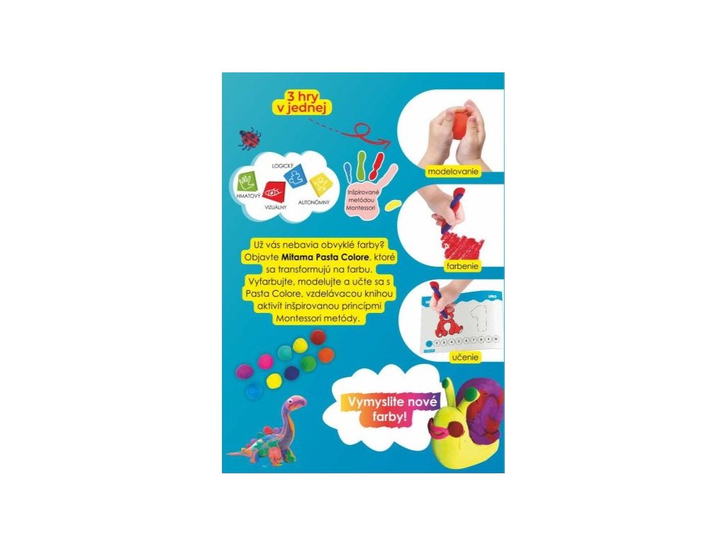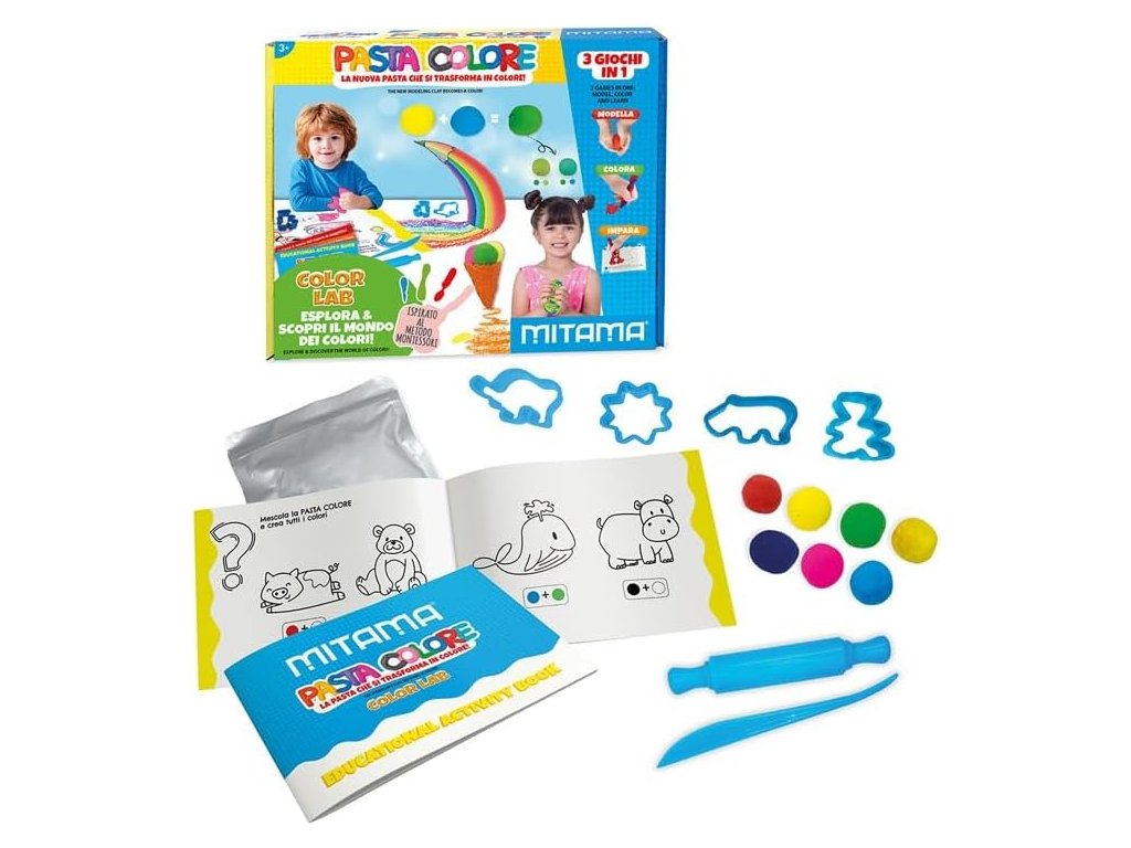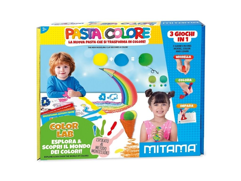 Fantastická laboratoř se super novou a originální modelovací a barvicí hlínou a různými doplňky. 2 hry v 1. Měkká modelovací hmota s inovativním složením, která vám umožní modelovat požadované tvary a po zaschnutí ji můžete použít k barvení! naučit se barvit a počítat a zároveň se pobavit svou kreativitou pomocí nové super pasty pro modelování a vybarvování: BAREVNÉ LABORATORIUM: s barevnou hlinkou pro modelování a vybarvování pomocí různých zábavných tvarů, abyste se naučili vybarvovat prostory kreseb alba a mícháním barev vyrobených pomocí super pasty