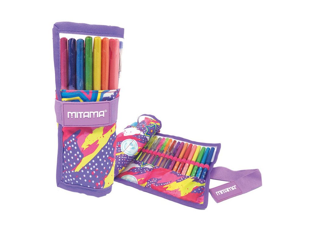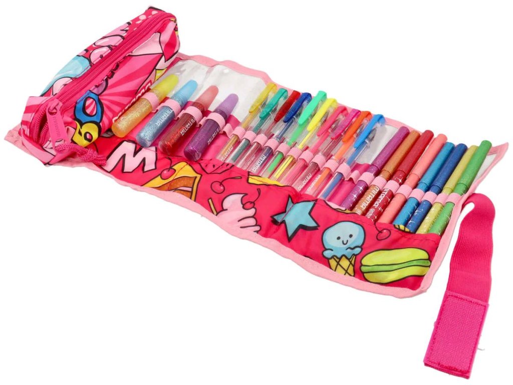 Pokud hledáte něco speciálního, pak objevte tento roll-up penál. Zatímco v tradičním pouzdru na tužky musíte vyhrabat celý obsah, abyste našli psací potřeby, které zrovna potřebujete. Srolovací obal na pera je úžasně praktickým a kreativním přehodnocením ukládání psacích potřeb. Lze jej otevřít suchým zipem a poté jej rozvinete jako kouzelný koberec a všechny psací potřeby najdete na svém místě, o což se postarají fixační jazýčky. Pouzdro na pera je dodáván plně vybavený. Příslušenství: 10 třpytivých gelových per, 8 třpytivých fixů a 7 třpytivých lepidel a samotný obal na tužky, který lze odepnout suchým zipem! Veškeré psací potřeby jsou po ruce v rolovacím penálu, jeho neobvyklý design vzbuzuje zájem dětí a rozjasňuje rutinu používání psacích potřeb! Rozměr: 19 x 9 cm