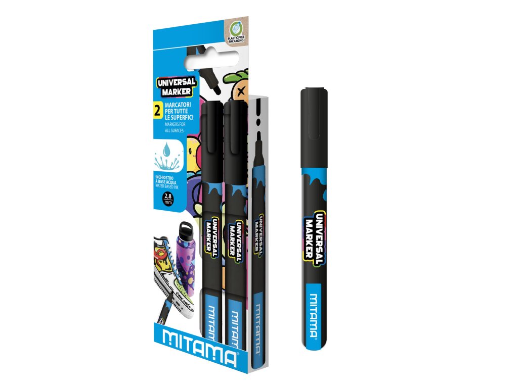 MITAMA Popisovač na vodní bázi na všechny povrchy černý 2 ks. Sada univerzálních popisovačů MITAMA, která obsahuje dva univerzální popisovače, perfektní volba pro značení všech typů povrchů. Fixy jsou voděodolné a díky svým rychleschnoucím vlastnostem zaručují odolné psaní a kreslení bez rozmazání. Hroty s různou tloušťkou čar (2-8 mm) vytvářejí nejpřesnější kresby a jasně viditelné čáry. Vlastnosti : • Voděodolný a rychleschnoucí: Trvalé značení na různých površích. • Tloušťka čáry 2-8 mm: Ideální pro přesné kreslení a psaní. • Ergonomický design: Pohodlné uchopení i při dlouhodobém používání. • Univerzální použití: Perfektní pro jakýkoli povrch! S univerzální sadou popisovačů MITAMA jsou všechny typy psaní a kreslení snadné a efektivní.Doplňkové parametry