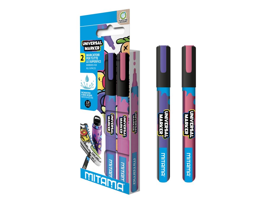 MITAMA Popisovač na vodní bázi na všechny povrchy 2 ks - fialová,růžová Sada univerzálních popisovačů MITAMA, která obsahuje dva univerzální popisovače, perfektní volba pro značení všech typů povrchů. Fixy jsou voděodolné a díky svým rychleschnoucím vlastnostem zaručují odolné psaní a kreslení bez rozmazání. Hroty s různou tloušťkou čar (2-8 mm) vytvářejí nejpřesnější kresby a jasně viditelné čáry. Vlastnosti : • Voděodolný a rychleschnoucí: Trvalé značení na různých površích. • Tloušťka čáry 2-8 mm: Ideální pro přesné kreslení a psaní. • Ergonomický design: Pohodlné uchopení i při dlouhodobém používání. • Univerzální použití: Perfektní pro jakýkoli povrch! S univerzální sadou popisovačů MITAMA jsou všechny typy psaní a kreslení snadné a efektivní.Doplňkové parametry