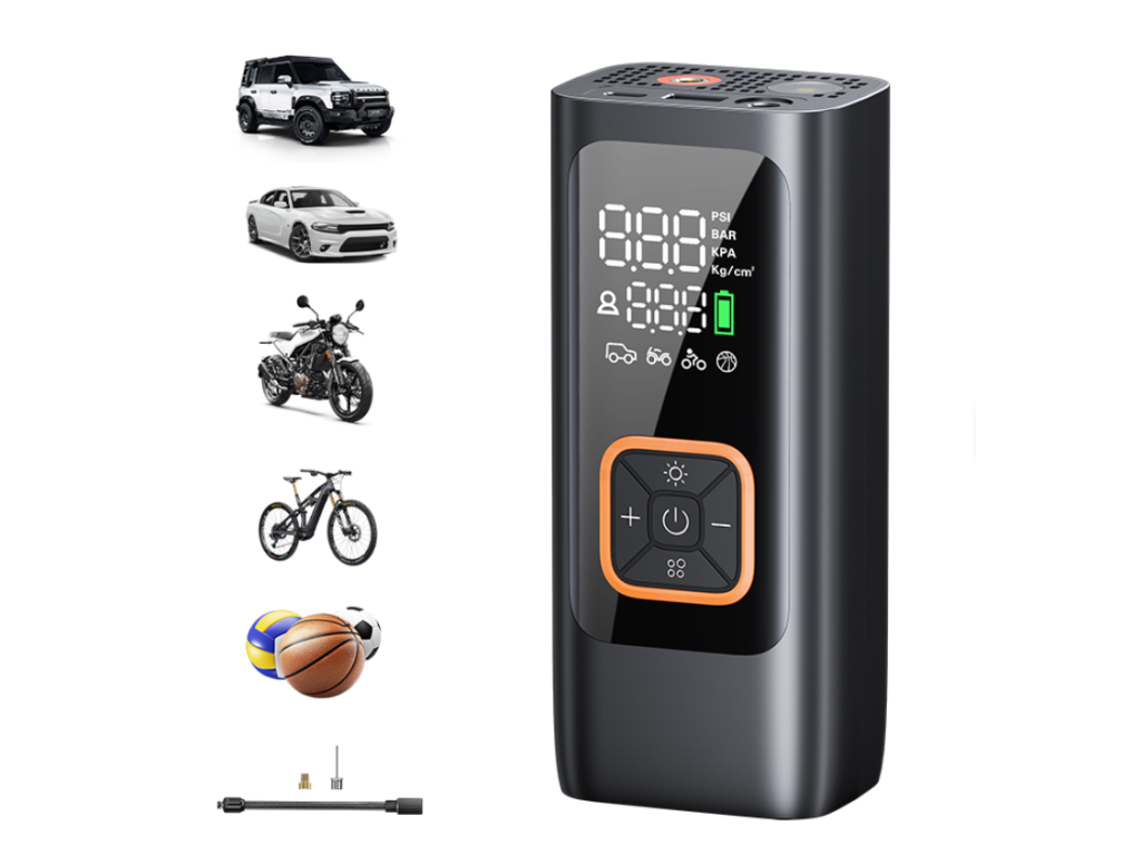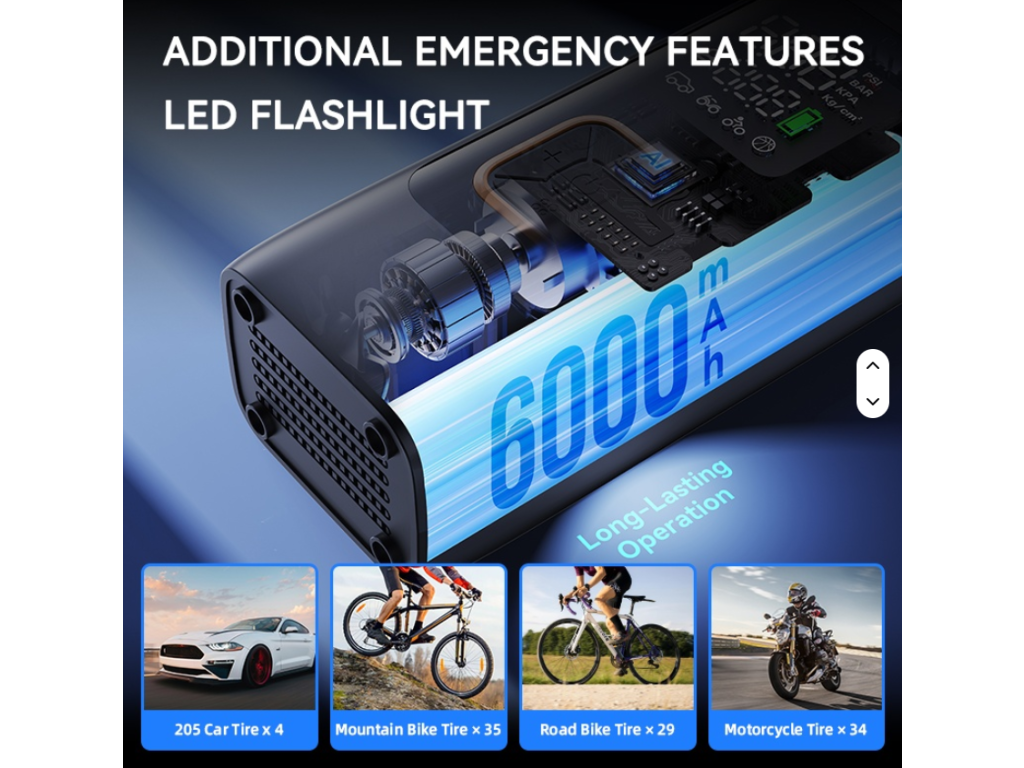 Elektrická mini pumpička NEWO LP20 je výkonný a kompaktní vzduchový kompresor určený pro rychlé, přesné a pohodlné huštění pneumatik. Díky maximálnímu tlaku 150 PSI, vysokému výkonu až 120 W, duálnímu LED displeji a integrovanému nouzovému světlu je ideální volbou pro cyklisty, motocyklisty i řidiče automobilů.