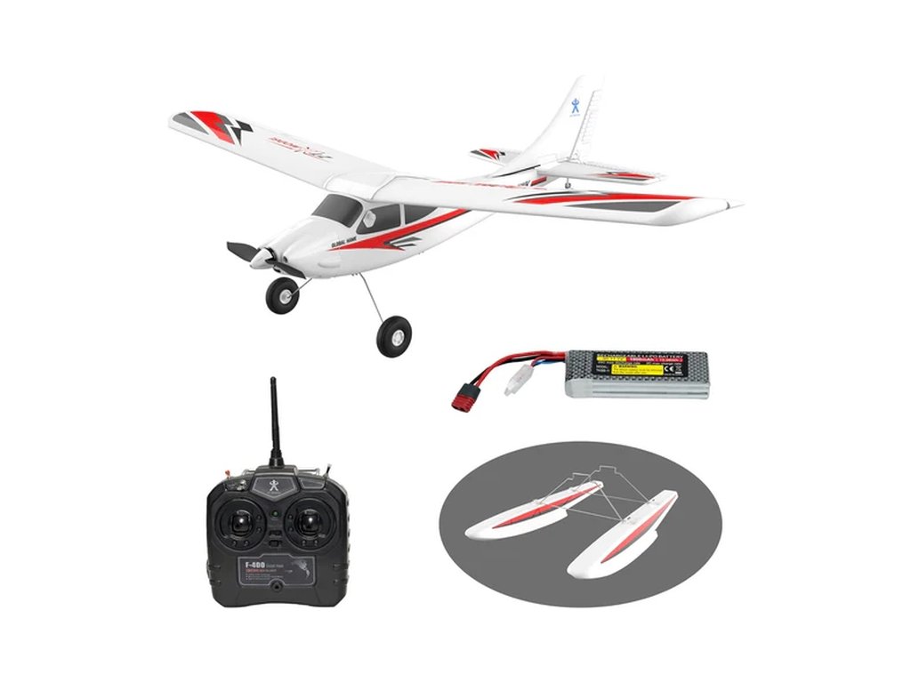- Dvojitý let na souši i na vodě: Snadno přepínejte mezi režimem hydroplánu a pozemního letadla pomocí dodaného podvozku a bójí.