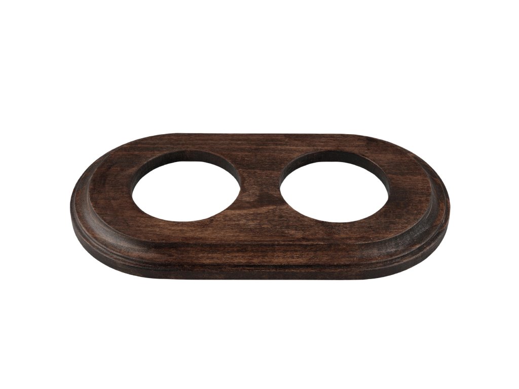 Dřevěný dvojrámeček v retrostylu pro zásuvky a vypínače (montované pod omítkou). Průměr otvoru: 50mm, celkové rozměry podložky: 180x10mm