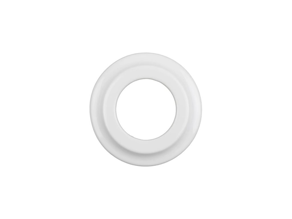 Porcelánový rámeček v retrostylu pro zásuvky a vypínače (montované pod omítkou).Kulatý design. Průměr otvoru: 50mm, celkové rozměry podložky: 100x10mmDoplňkové parametry