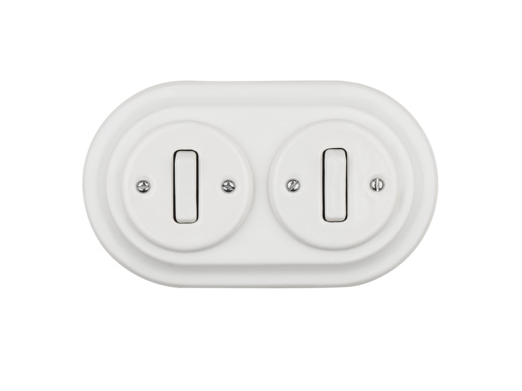 RETRO vypínač keramika bílý, sada 2ks + dvojrámeček
