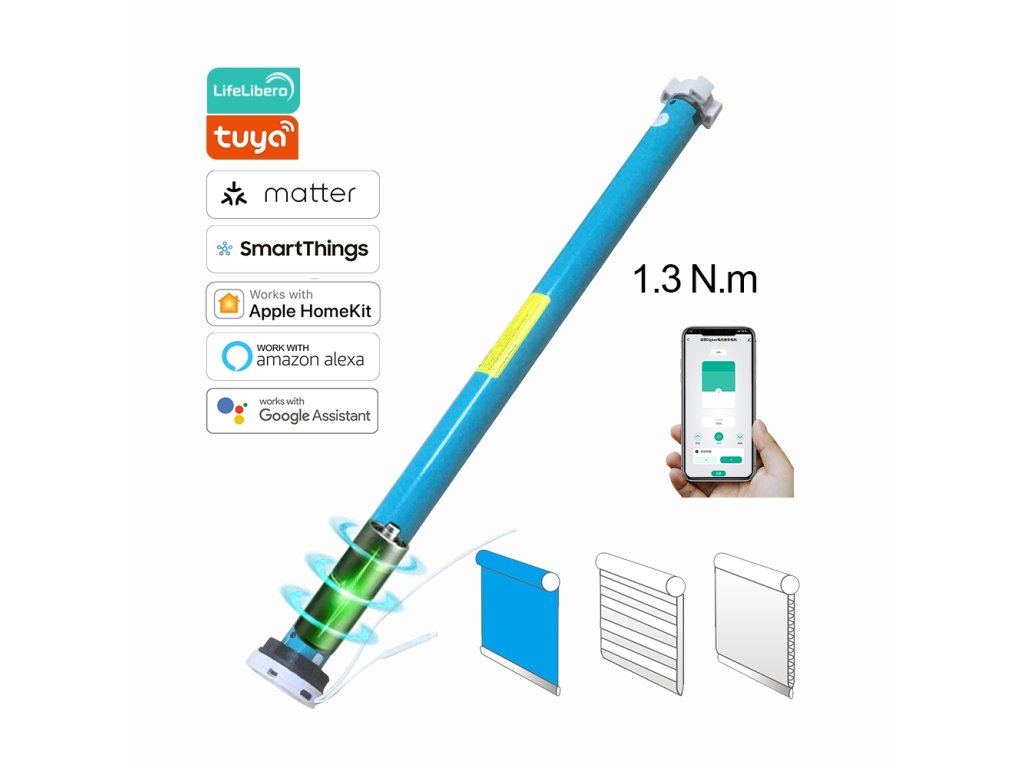 Elektrický bateriový pohon pro rolety do oken. Bezdrátová komunika na základě wifi sítě (součást balení je i USB wifi adaptér) Možnost nastavení času zatažení a odtažení pomocí časovače. Průměr tyče: 25mm Ovládání pomocí aplikace Tuya nebo dálkovým ovladačem (není součást balení) Bezdrátové ovládání: Wifi Maximální zatížení KG: 2 KG Vhodné pro: šířka okna menší než: 3 metry Pro trubku: 25 mm Průměr motoru: 16 mm Točivý moment: 0,3 Nm Jmenovité otáčky: 33 ot./min Jmenovitý výkon: 22 W Třída IP: IP44 Příkon: Baterie, kapacita baterie 800 mAh. Jmenovitý proud: 0,1 A Jmenovitá frekvence: 50/60 Hz Příjemová frekvence: 433,92 MHzDoplňkové parametry