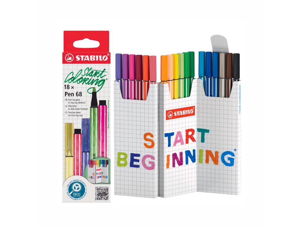 Prémiový vláknový fix - STABILO Pen 68 - 18er Zick-Zack deskset - 18 různých barev 65 prémiových barev včetně neonových a pastelových slibuje nekonečnou kreativitu – není divu, že STABILO Pen 68 dokonale zapadá do současných trendů v oblasti Bullet Journalingu, skicování nebo Handletteringu. Ale i příznivci mandal, malby a kresby jsou nadšení z všestrannosti jeho kvalitního vláknového hrotu. Kreativci a (hobby) umělci milují velkou rozmanitost, s níž lze pestře realizovat každý nápad. Robustní hrot zajišťuje rovnoměrné rozložení barev a je ideální pro kreslení silných čar a barvení velkých ploch. Vláknový fix STABILO Pen 68 může být až 24 hodin ponechán bez víčka, aniž by vyschl – což je perfektní, pokud váš kreativní projekt zabere více času.Doplňkové parametry