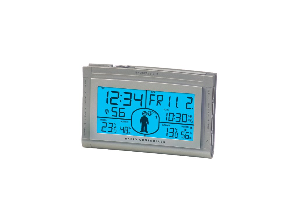 domácí meteostanice se všemi základními funkcemi a předpovědí počasí podsvícený displej předpověď počasí podle znázorněné postavičky - 24 různých podob měří vnitřní a venkovní teplotu a vlhkost rádiovým signálem kontrolovaný čas dva budíky s opakovaným vyzváněním záznam min. a max. naměřených hodnot indikátor vývoje počasí indikátor pocitového komfortu uvnitřDoplňkové parametry
