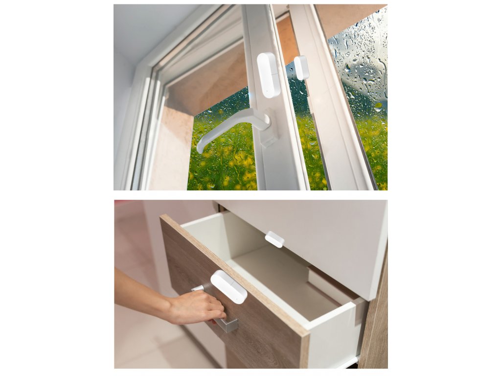 Senzor do dveří a oken. Senzor je schopen zachytit jakýkoliv pohyb a okamžitě pošle upozornění do vašeho telefonu. V aplikaci si lze kdykoliv zkontrolovat jestli jsou dveře zavřené nebo otevřené, historii pohybu a stav baterie. Senzor má také funkci světelného čidla. Po propojení s chytrým světlem lze nastavit tak, aby při nízké intenzitě světla rozsvítil chytré světlo. Lehká instalace pomocí lepidla nebo oboustranné lepicí pásky. Poháněno dvěma LR03 bateriemi.Doplňkové parametry