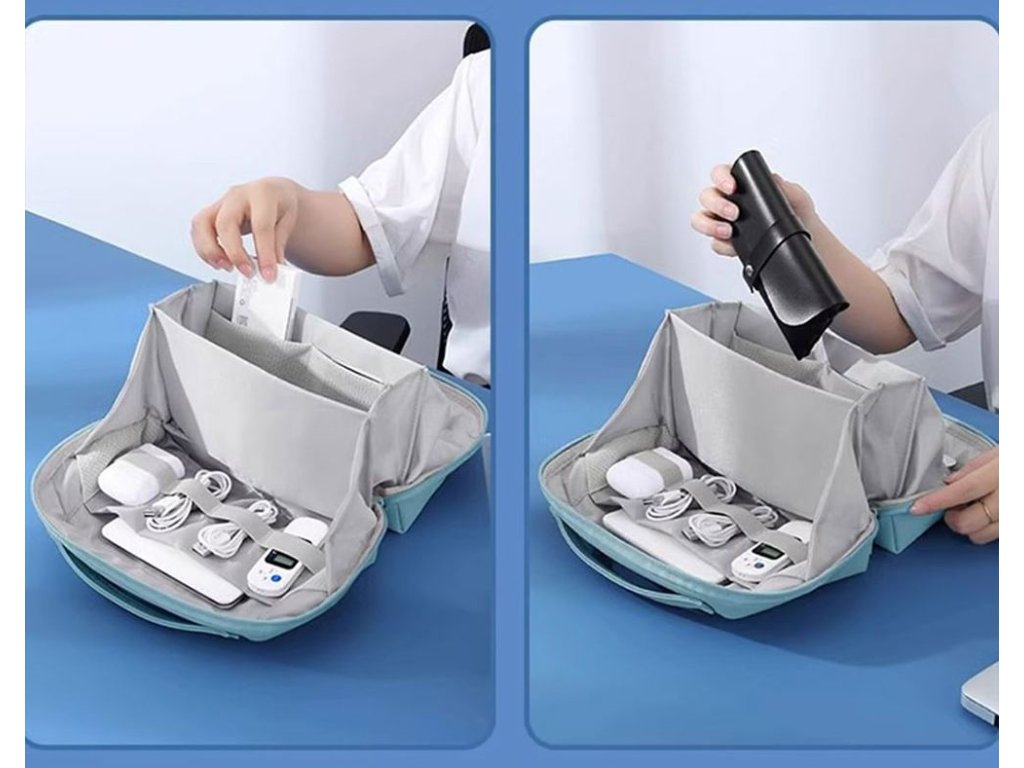 Organizér kabelů a příslušenství je jedinečný a praktický produkt pro ty, kteří milují pořádek a jednoduchost. Díky krásnému designu a odolné konstrukci je tato brašna vhodná nejen pro uložení digitálního příslušenství, ale i pro nošení dalšího nezbytného příslušenství. Díky promyšlenému designu pro snadný přístup a praktické velikosti bude tato taška vaším stálým společníkem na cestách. Vynikající materiál a praktický design Obal je vyrobeno z PU, které je voděodolné, odolné vůči skvrnám a poškrábání. Díky těmto vlastnostem zůstane vaše taška vždy svěží a čistá a nemusíte se bát, že se poškodí nebo zašpiní. Do této tašky snadno uložíte jakékoli mobilní příslušenství, kabely, powerbanky a dokonce i své osobní věci a můžete se vydat na výlet nebo schůzku. Pohodlné rozdělení pro lepší organizaci Jednou z hlavních předností této tašky je její několik kapes a správné rozdělení. Díky tomuto pečlivému designu si můžete udržet všechny své věci uspořádané a na dosah ruky uvnitř tašky. Díky vnitřnímu rozdělení bude každý váš doplněk na svém místě a snadno se najde. Tato taška je velmi praktickou volbou, zejména pro ty, kteří si během cestování cení organizovanosti a rychlého přístupu ke svým věcem. Vhodné rozměry a hmotnost pro snadné přenášení S rozměry 23x6x14 cm a čistou hmotností 155 gramů tato taška nejenže poskytuje dostatek prostoru pro všechny vaše věci, ale je také velmi lehká a přenosná. Díky plochému designu se snadno vejde do kabelky nebo kufru a nezabere mnoho místa. Tento produkt je také ideální volbou pro lidi, kteří hledají kompaktní a pohodlnou tašku pro cestování letadlem a každodenní použití. Různé barvy pro všechny chutě Taška je k dispozici v černé, šedé a modré barvě, takže si ji můžete vybrat podle svého vkusu a stylu. Moderní a rozmanité barvy této tašky z ní dělají stylovou a atraktivní volbu pro každého. Vhodné pro různé použití Brašna není určena pouze k uložení digitálního vybavení. Můžete ji použít k organizaci a přenášení různých osobních doplňků, kosmetiky, holicích nástrojů apod. Tato taška je vhodná pro všechny příležitosti a její funkčnost vám umožní snadno uložit všechny potřebné věci na jednom místě. Specifikace Materiál: Odolný a voděodolný PU Rozměry: 23x6x14 cm Hmotnost: 155 gDoplňkové parametry