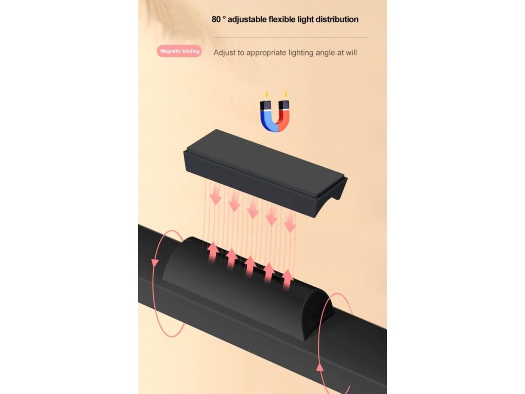 Magnetická lampička je všestranné zařízení, které skvěle hodí do různých situací. Poskytuje světlo šetrné k očím, které snadno přizpůsobíte individuálním preferencím z hlediska jasu a úhlu sklonu lampičky. Elegantní a štíhlé bezdrátové svítidlo má 28 vestavěných LED diod, jejichž celkový výkon je 2,5W a mohou svítit v rozsahu 3000-5000K. Model je vybaven dotykovým panelem pro zapnutí a výběr 1 ze 3 provozních režimů, baterií s kapacitou 1200mAh a konektorem pro nabíjení. Lampa má magnetické pouzdro, které má zakřivený tvar a umožňuje nastavení úhlu osvětlení v rozmezí 80° a pomocí lepící základny se může nalepit do dřevěné skříně nebo na plastový povrch. Pouzdro také umožňuje vyjmout lampu z podstavce a volně s ní chodit po místnosti. Lampa může být použita k osvětlení kuchyně, ložnice, obývacího pokoje, šatníku nebo pracovního stolu. Specifikace: • Kapacita baterie: 1 200 mAh • Barva: 3000-5000 K • Typ diody: LED • Výkon: 2,50 W • Dálkové ovládání: ne • Rozměry: 320 mm x 35 mm x 48 mmDoplňkové parametry